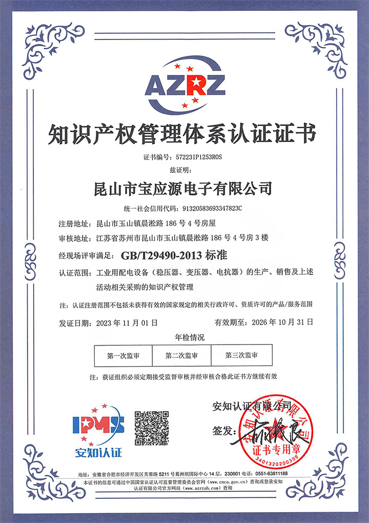 知識產權管理體系認證證書